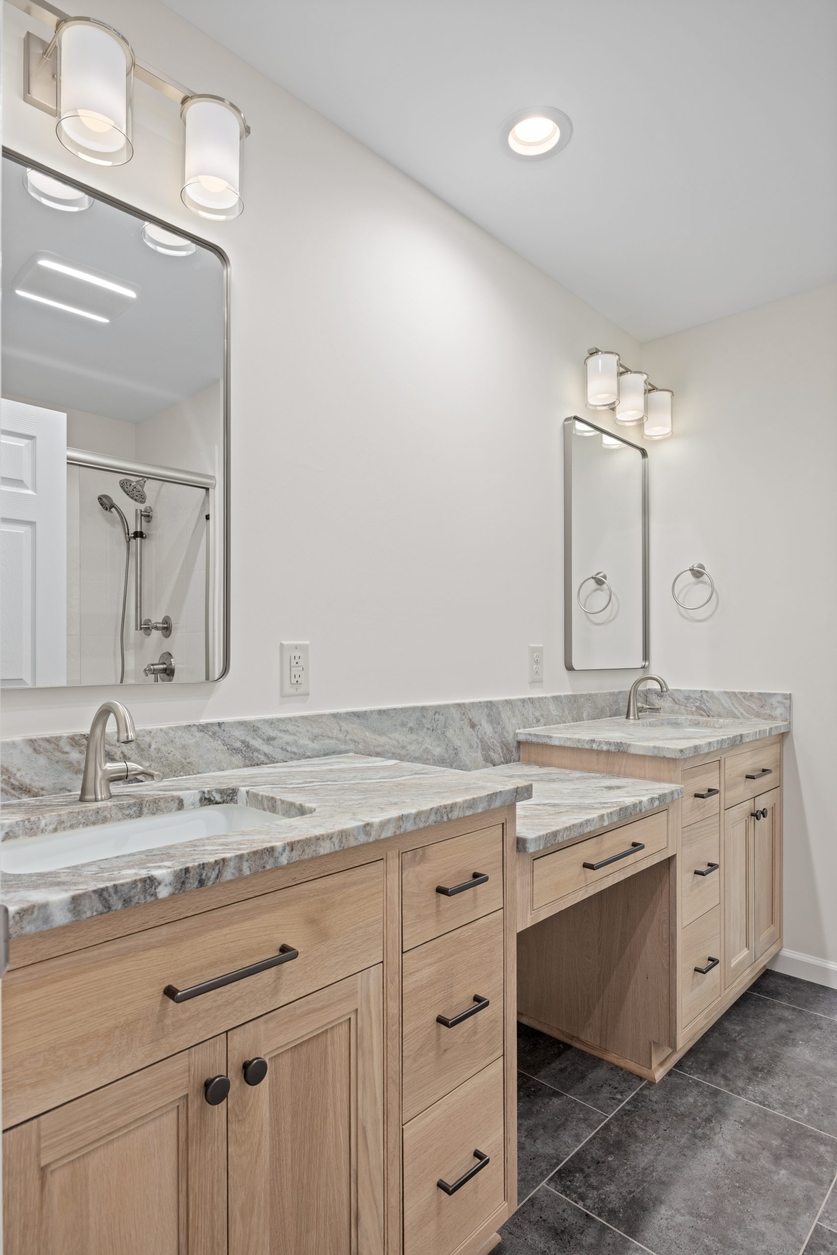 The new design features a walk-in shower, a double vanity, and lighter finishes that brighten the room and create a spa-like retreat. This remodel not only improved the use of space but also enhanced both comfort and functionality, bringing long-term value to the home.